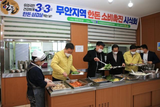 À̳¯ ´ëÇÑÇѵ·Çùȸ ¹«¾È±ºÁöºÎ(ÁöºÎÀå ¹Ú¹®Àç)¿¡¼´Â µÅÁö°í±â ¼Òºñ¿Í ¿ì¼ö¼º È«º¸¸¦ À§ÇØ 150kg »ó´çÀÇ Çѵ·À» º¸½ÓÀ¸·Î Á¶¸®ÇÏ¿© Á¡½ÉÀ¸·Î ¹«·á Á¦°øÇÏ¿´´Ù.