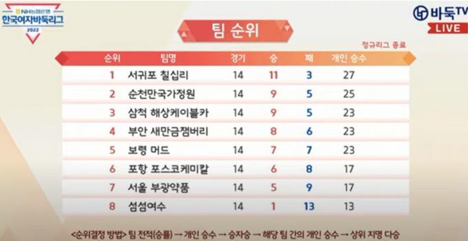 ¼øÃµ¸¸±¹°¡Á¤¿øÆÀÀº ÁÖÀå ¿ÀÀ¯ÁøÀÌ 6½Â 1ÆÐ·Î º¸·É¸ÓµåÀÇ ÃÖÁ¤ 9´Ü°ú ´Ù½Â °øµ¿ 1À§·Î ³ª¼¹À¸³ª, °³ÀÎ ´Ù½Â ¼øÀ§¿¡¼´Â ÃÖÁ¤(´Ü(º¸·É¸Óµå)°ú Á¶½Â¾Æ 5´Ü(¼±ÍÆ÷Ä¥½Ê¸®)ÀÌ ³ª¶õÈ÷ 12½Â 2ÆÐ¸¦ ±â·ÏÇÏ¸ç °øµ¿ 1À§¸¦ ±â·ÏÇß´Ù.