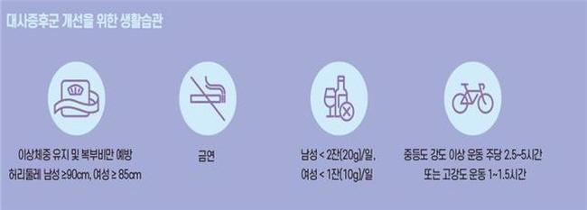 ´ë»çÁõÈıºÀº ÇÕº´ÁõÀÌ ¹ß»ýÇϱâ Àü¿¡´Â Áõ»óÀÌ ¾ø´Ù. ÇöÀç ±¹³»¿¡¼´Â NCEP(¹Ì±¹ ±¹°¡ ÄÝ·¹½ºÅ×·Ñ ±³À° ÇÁ·Î±×·¥) Áø´Ü ±âÁØ Áߺ¹ºÎºñ¸¸ ±âÁظ¸ Çѱ¹Àο¡ ¸ÂÃç »ç¿ëÇÏ´Â °æ¿ì°¡ ¸¹´Ù. ÀϹÝÀûÀ¸·Î ¾Æ·¡ÀÇ ±âÁØ Áß 3°¡Áö ÀÌ»ó¿¡ ÇØ´çµÇ¸é ´ë»çÁõÈıºÀ¸·Î Á¤ÀÇÇÑ´Ù. ´ë»çÁõÈıº Ä¡·áÀÇ ±Ã±ØÀûÀÎ ¸ñÇ¥´Â ´ç´¢º´, ½É³úÇ÷°üÁúȯ µîÀ» ¿¹¹æÇϰí ÀÌ·Î ÀÎÇÑ »ç¸ÁÀ» ÁÙÀÌ´Â °ÍÀÌ´Ù. ¶Ç ½ÄÀÌ¿ä¹ý, ¿îµ¿¿ä¹ýÀ» Æ÷ÇÔÇÑ »ýȰ½À°ü °³¼±À» ÅëÇØ ÀûÁ¤ üÁßÀ» À¯ÁöÇÏ´Â °ÍÀÌ Áß¿äÇÏ´Ù.