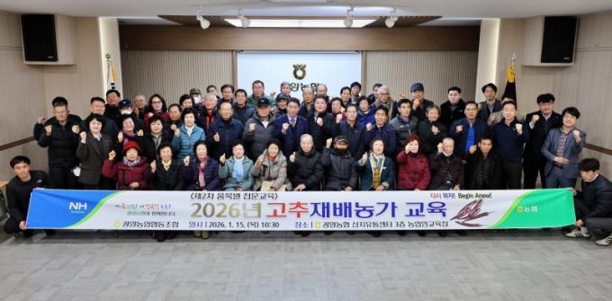 À̹ø ±³À°Àº ³óÇù°æÁ¦ÁöÁÖ Á¾¹¦¼¾ÅÍ À¯¼ö Áö»çÀåÀ» °»ç·Î ÃʺùÇØ °íÃß »ý»ê·® Çâ»ó°ú ¾ÈÁ¤ÀûÀÎ ¼öÈ®À» ¸ñÇ¥·Î °íÃß Àç¹è Àü¹Ý¿¡ ´ëÇÑ Ã¼°èÀûÀÎ ¼³¸íÀ» Áß½ÉÀ¸·Î ÀÌ·ïÁ³´Ù. °íÃß Àç¹è¿¡ ÇÊ¿äÇÑ Åä¾ç °ü¸®¿Í Æ÷Àå Áغñ ´Ü°èºÎÅÍ ¸ðÁ¾ ¼±Åà ¿ä·É, Á¤½Ä ½Ã±â¿Í °ü¸® ¹æ¹ý, »ýÀ° ´Ü°èº° ÁÖÀÇ»çÇ×±îÁö ½ÇÁ¦ ³ó°¡¿¡¼ °Þ´Â »ç·Ê¸¦ Áß½ÉÀ¸·Î »ó¼¼ÇÏ°Ô ´Ù·ï Âü¼®ÀÚµéÀÇ ÀÌÇØ¸¦ µµ¿ÔÀ¸¸ç, ±³À° ³»¿ëÀ» ÅëÇØ »ý»ê¼º Çâ»ó°ú ³ó°¡¼Òµæ Áõ´ë¿¡ ±â¿©ÇÒ ¼ö ÀÖÀ» °ÍÀ¸·Î ±â´ëµÈ´Ù.