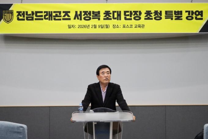 Àü³²Àº 2¿ù 9ÀÏ ¿ù¿äÀÏ ¿ÀÀü Àü³²µå·¡°ïÁî Ãʴ롤4´ë ´ÜÀåÀ» ¿ªÀÓÇÑ ¼Á¤º¹ Àü ´ÜÀåÀ» ÃÊÃ»ÇØ, ÇÁ·Î¼±¼ö´Ü ´ë»óÀ¸·Î Ưº°°¿¬À» ÁøÇàÇß´Ù. À̹ø °¿¬Àº 2026½ÃÁðÀ» ¾ÕµÎ°í ¼±¼ö´Ü¿¡ Àü³²µå·¡°ïÁîÀÇ Ã¢´Ü öÇаú ÇÁ·Î¼±¼ö·Î¼ÀÇ Ã¥ÀÓÀ» °øÀ¯Çϰí, ÆÀ °á¼Ó·Â°ú µ¿±âºÎ¿©¸¦ °ÈÇϱâ À§ÇØ ¸¶·ÃµÆ´Ù.
