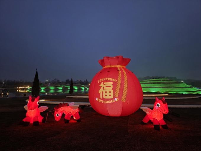 ¼³ ¸íÀýÀ» ¸Â¾Æ ¼øÃµ¸¸±¹°¡Á¤¿ø¿¡ µé¾î¼´Â ¼ø°£, °ü¶÷°´Àº °¡Àå ¸ÕÀú ¡®º¹¡¯(ÜØ)À» ¸¸³´Ù. ÀûÅ丶 Æ÷ÅäÁ¸À» ½ÃÀÛÀ¸·Î, 4m ³ôÀÌ¿¡ ´ÞÇÏ´Â ´ëÇü º¹ ÁÖ¸Ó´Ï, »õÇØ¸¦ »ó¡ÇÏ´Â 2026³â ´ëÇü ÅäÇǾ, ij¸¯ÅÍ Æ÷ÅäÁ¸ ·ç¹Ì¶×À̱îÁö Á¤¿ø °÷°÷ÀÌ »çÁø ¸í¼Ò·Î ²Ù¸çÁ³´Ù. Á¤¿ø Àüü°¡ ÇϳªÀÇ ¹«´ëÀÌÀÚ ¹è°æÀÌ µÇ¸ç, °ü¶÷°´µéÀº ÀÚ¿¬½º·´°Ô »õÇØ ¼Ò¸ÁÀ» ´ãÀº ÀÎÁõ¼¦À» ³²±æ ¼ö ÀÖ´Ù.