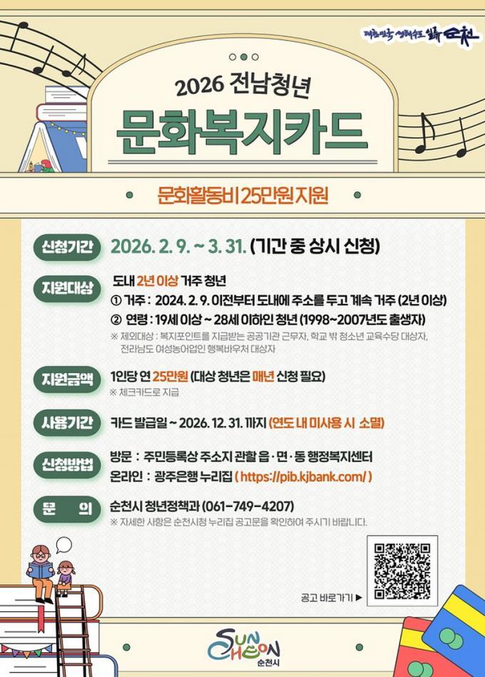 | ¼øÃµ½Ã, Àü³²Ã»³â ¹®Èº¹ÁöÄ«µå Áö¿ø»ç¾÷ 3¿ù 31ÀϱîÁö Á¢¼ö ¾çÀçºÀ ±âÀÚ yjb66@nate.com |