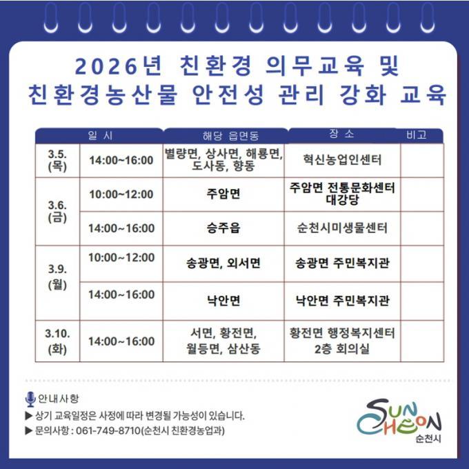 ÇöÀç ¼øÃµ½ÃÀÇ Ä£È¯°æ ÀÎÁõ(À¯±â³ó¡¤¹«³ó¾à) ³ó°¡´Â 1,200¿© ¸íÀ̸ç, Àç¹è¸éÀûÀº 1,725ha·Î Àüü °æÁö¸éÀû 11,568haÀÇ ¾à 15%¸¦ Â÷ÁöÇϰí ÀÖ´Ù. ½Ã´Â À̹ø Àǹ«±³À°À» ÅëÇØ ģȯ°æ³ó¾÷ ±â¹ÝÀ» ´õ¿í °ø°íÈ÷ Çϰí, ¾ÈÀüÇÑ ³ó»ê¹° »ý»ê ü°è¸¦ °ÈÇÒ ¹æÄ§ÀÌ´Ù.
