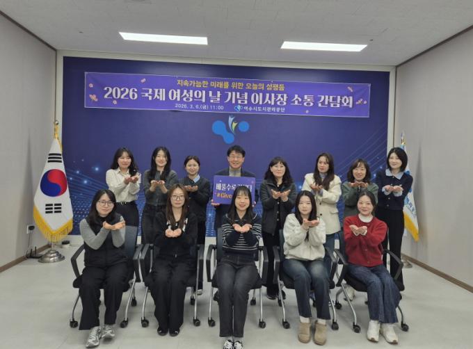 | ¿©¼ö½Ãµµ½Ã°ü¸®°ø´Ü, ±¹Á¦ ¿©¼ºÀÇ ³¯ ¸Â¾Æ ÀÌ»çÀå-¿©¼ºÁ÷¿ø ¼ÒÅë °£´ãȸ °³ÃÖ ¾ç¼ºÆòµî Á¶Á÷¹®È È®»ê°ú ¿©¼ºÁ÷¿ø ±Ù¹«È¯°æ °³¼±À» À§ÇÑ ÀÇ°ß Ã»Ãë ¾çÀçºÀ ±âÀÚ yjb66@nate.com |