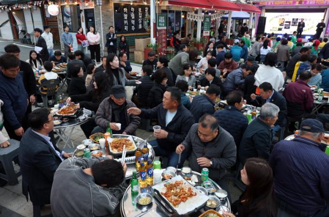 ¸Ô°Å¸® ºÎ¹®¿¡¼µµ Çà»çÀå ¿±â´Â ¶ß°Å¿ü´Ù. ÇöÀå¿¡¼´Â ºÒÇâ°¡µæ ¿¬ÅººÒ°í±â°¡ ¹æ¹®°´µéÀÇ ÀÔ¸ÀÀ» »ç·ÎÀâÀ¸¸ç ³ôÀº Àα⸦ ²ø¾ú´Ù. ¿¬ÅººÒ ƯÀ¯ÀÇ ±íÀº dz¹Ì¿Í µû¶æÇÑ ¸Ô°Å¸®´Â Çà»çÀåÀ» ãÀº ¹æ¹®°´µé¿¡°Ô Å« ¸¸Á·À» ¾È°å°í, ½ÇÁ¦ ÆÇ¸Å ¸ÅÃâ·Îµµ À̾îÁö¸ç Áö¿ª»ó±Ç Ȱ¼ºÈ¿¡µµ ±àÁ¤ÀûÀÎ ¼º°ú¸¦ º¸¿´´Ù. °¡Á· ´ÜÀ§ ¹æ¹®°´°ú °ü±¤°´µéÀº °ø¿¬°ú ÇÔ²² ´Ù¾çÇÑ ¸Ô°Å¸®¸¦ Áñ±â¸ç °Áø¸¸ÀÇ Á¤°Ü¿î ¹ã¹®È¸¦ üÇèÇß´Ù.