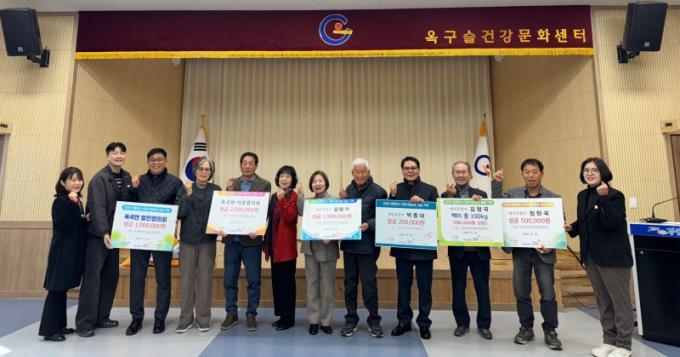 ±âŹµÈ ¼º±Ý ¹× ¹°Ç°Àº ¡ã¹ÚÁ¾´ë ½Å±â¸¶À» ÀÌÀå ¼º±Ý 20¸¸ ¿ø ¡ã ±èÇü±¹ ¹é¾Ï¸¶À» ÀÌÀå ¹é¹Ì 100kg(29¸¸ ¿ø »ó´ç) ¡ãÁ¤Çö±¹ ¼º±Ý 50¸¸ ¿ø ¡ã±è¸Á±â ¼º±Ý 150¸¸ ¿ø ¡ã¿Á°î¸é ¹ßÀüÇùÀÇȸ(ȸÀå ÀÌÁ¤¹«) ¼º±Ý 100¸¸ ¿ø ¡ã¿Á°î¸é ÀÌÀåÇùÀÇȸ(ȸÀå ¼ºÈ£ÁÖ) ¼º±Ý 200¸¸ ¿øÀÌ´Ù. À̹ø¿¡ ¸ðÀÎ ÃÑ 549¸¸ ¿ø »ó´çÀÇ ¼º±Ý°ú ¹°Ç°Àº °ü³» Àú¼ÒµæÃþ°ú º¹Áö »ç°¢Áö´ë¿¡ ³õÀÎ ÀÌ¿ôµéÀ» À§ÇÑ Áö¿ø¿¡ »ç¿ëµÉ ¿¹Á¤ÀÌ´Ù.