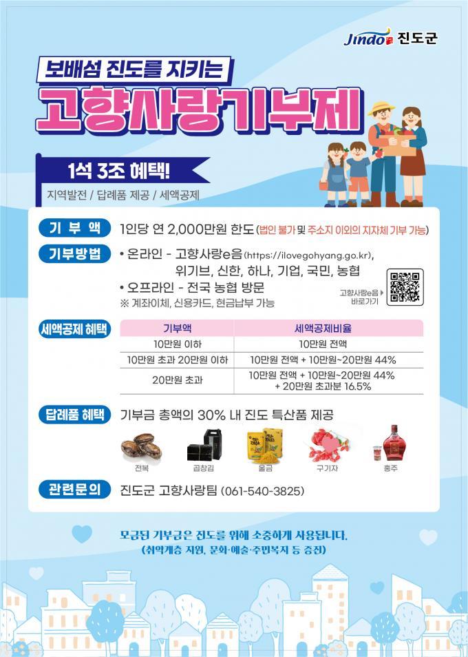 | Áøµµ±º, 2025³â °íÇâ»ç¶û±âºÎ±Ý 6¾ï 9,900¸¸ ¿ø ´Þ¼º Àü±¹ ±âºÎÀÚµéÀÇ µû¶æÇÑ ÀÀ¿ø, Áö¿ª ¹ßÀü µ¿·ÂÀ¸·Î À̾îÁ® ¼ºÁ¤È£ ±âÀÚ yjb66@nate.com |