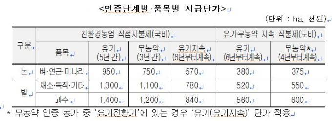 ģȯ°æÁ÷ºÒÁ¦¸¦ 5³â(5ȸ)À» ¹ÞÀº ³ó°¡µéÀº µµºñ »ç¾÷ÀÎ À¯±â¡¤¹«³ó¾àÁö¼ÓÁ÷ºÒÁ¦·Î ģȯ°æ³ó¾÷Á÷ºÒÁ¦ ´Ü°¡ÀÇ 40~50%°¡ Áö¿øµÈ´Ù. ģȯ°æ³ó¾÷Á÷ºÒÁ¦´Â ¿ÃÇØ 10¿ù±îÁö ģȯ°æ³ó»ê¹° ÀÎÁõ±â°üÀÇ ÀÌÇàÁ¡°ËÀ» °ÅÃÄ ÀÎÁõÀÌ À¯È¿ÇÑ °ÍÀ¸·Î Å뺸¹ÞÀº ³óÁö¸¦ ´ë»óÀ¸·Î 12¿ù¿¡ Áö±ÞÇÒ ¿¹Á¤ÀÌ´Ù.