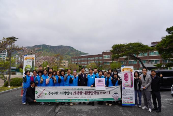 ¼øÃµ³óÇùÀº 4¿ù 10ÀÏ ¾ÆÄ§, ¼øÃµ °³²¿©ÀÚ°íµîÇб³ ±³¹® ¾Õ¿¡¼ µî±³ÇÏ´Â Çлýµé°ú ±³Á÷¿øµéÀ» ´ë»óÀ¸·Î ¡®¾ÆÄ§¹ä ¸Ô±â Ä·ÆäÀΡ¯À» ¼ºÈ²¸®¿¡ °³ÃÖÇß´Ù°í ¹àÇû´Ù.